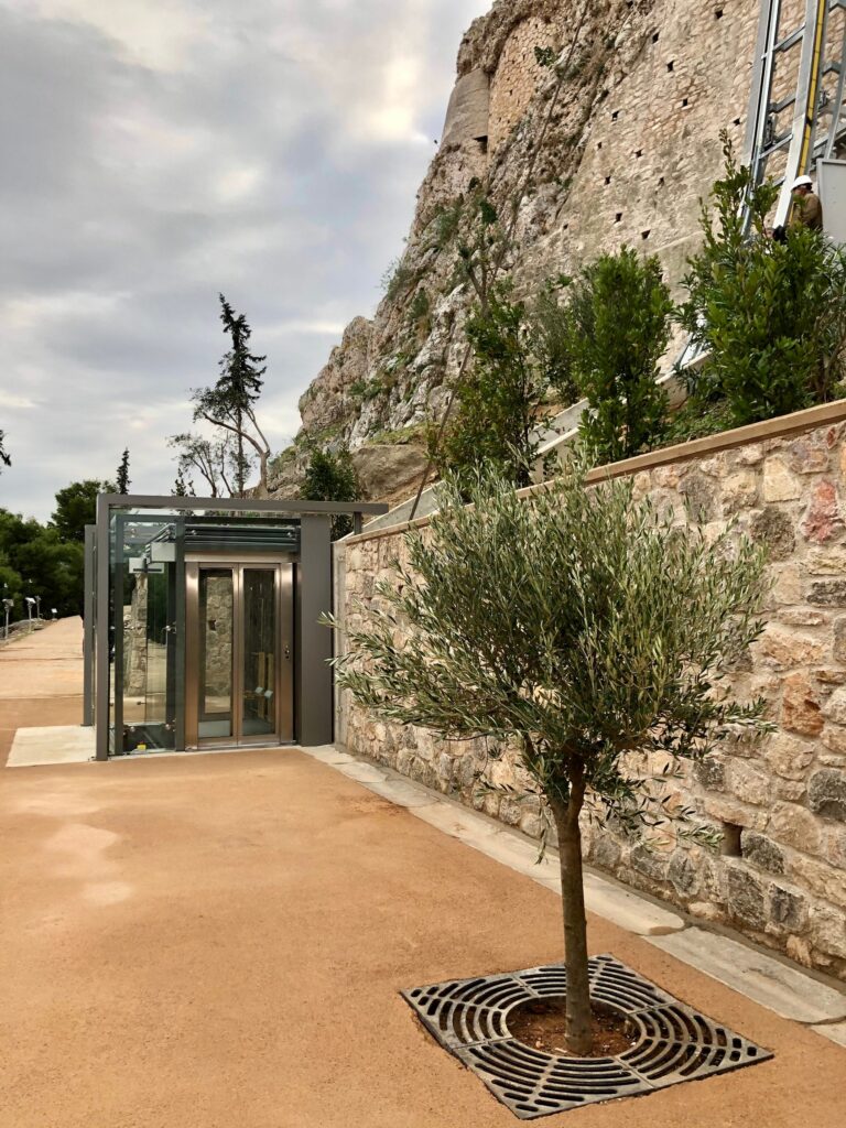 Την ίδια εποχή κατασκευάστηκε και ένας εργοταξιακός διάδρομος από την έξοδο του αναβατορίου μέχρι την οδό των Παναθηναίων, βορείως του Παρθενώνος, προκειμένου τα άτομα με αμαξίδια να έχουν τουλάχιστον θέαση των μνημείων.