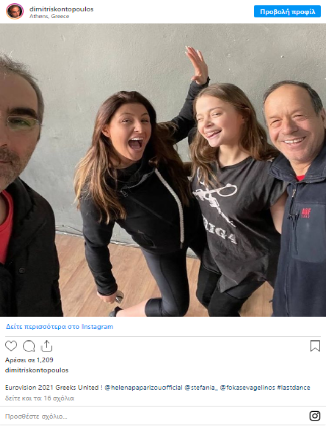 Από την πλευρά του ο Δημήτρης Κοντόπουλος έγραψε στο δικό του προσωπικό λογαριασμό στο instagram: “Eurovision 2021 ενωμένοι Έλληνες”.