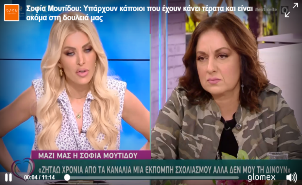 H Σοφία Μουτίδου έδωσε συνέντευξη στην εκπομπή Ευτυχείτε, στην Κατερίνα Καινούργιου και μίλησε, όπως πάντα, έξω από τα δόντια και χωρίς περιστροφές, για όλες τις εξελίξεις στο χώρο του θεάτρου και κυρίως για τις σεξουαλικές κακοποιήσεις και της φήμες.