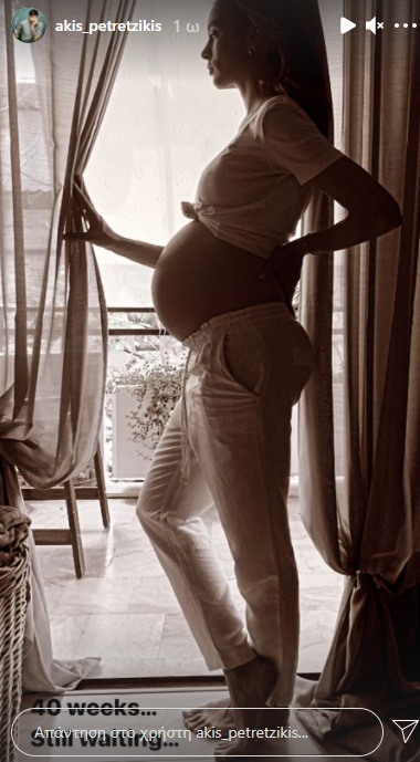 «40 εβδομάδες και ακόμα περιμένουμε», έγραψε χαρακτηριστικά ο Ακης Πετρετζίκης στην ολόσωμη φωτογραφία της Κωνσταντίνας Παπαμιχαήλ.