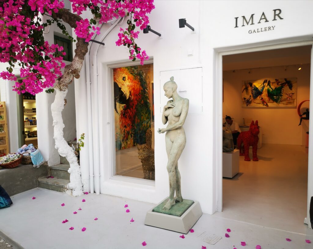 Η Μύκονος έπαιξε ρόλο σαν έμπνευση στη διαμόρφωση του χαρακτήρα μου και σαν τόπος με δυνατότητες και ευκαιρίες για την προώθηση της τέχνης μου. Καθώς μιλάω για το μεγαλείο και τη δύναμη της άγριας γυναίκας, της ψυχικά συνειδητοποιημένης, της δυναμικής, δεν θα μπορούσα να μην αντλώ από τα βιώματα της παιδικής μου ηλικίας στο νησί. Ξυπόλητη, με τον αέρα να μπλέκει τα μαλλιά, σκαρφαλώναμε με τα ξαδέρφια μου στα βράχια γύρω από τα σπίτια μας, που θυμίζουν αρειανό τοπίο, φτιάχναμε βέλη από τις καλαμιές και ζούσαμε πραγματικά χαρούμενοι με συντροφιά της φύσης. Αυτή τη σύμπραξη της γυναίκας και της φύσης προσπαθώ να αποτυπώσω στα έργα μου οπότε θεωρώ ότι η Μύκονος είναι κομβική στη ζωή μου.