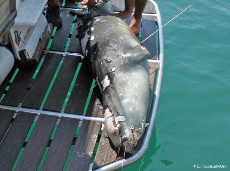 Και συνεχίζει: «Το αθώο και ανυποψίαστο ζώο, όπως διαπιστώσαμε, χτυπήθηκε επί τούτου με ψαροντούφεκο που έφερε καμάκι μεγάλου διαμετρήματος για αυτόν ακριβώς τον σκοπό.