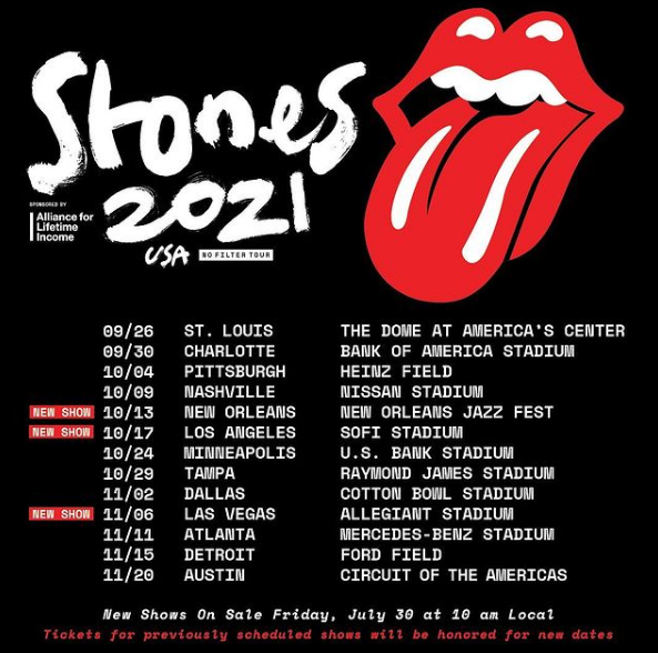 «Είμαστε ενθουσιασμένοι που μπορούμε να ανακοινώσουμε τις προγραμματισμένες ημερομηνίες για την περιοδεία των Rolling Stones στις ΗΠΑ, η οποία θα ξεκινήσει το φθινόπωρο!» ανακοίνωσε το συγκρότημα.