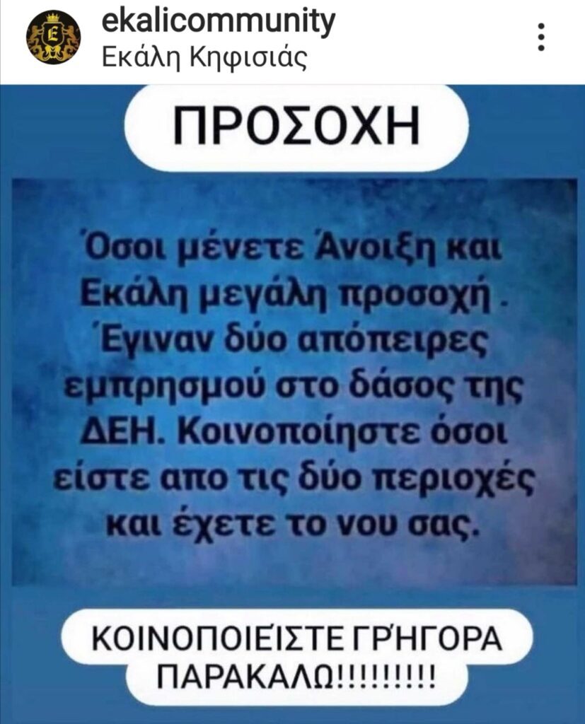 Παρόμοιο γεγονός έγινε γνωστό από το Ekali community και σχετική του ανάρτηση στον λογαριασμό του στο instagram που υποστηρίζει ότι βρέθηκαν εκρηκτικοί μηχανισμοί στις περιοχές Εκάλη και Άνοιξη και κάλεσε τους κατοίκους σε επαγρύπνιση.