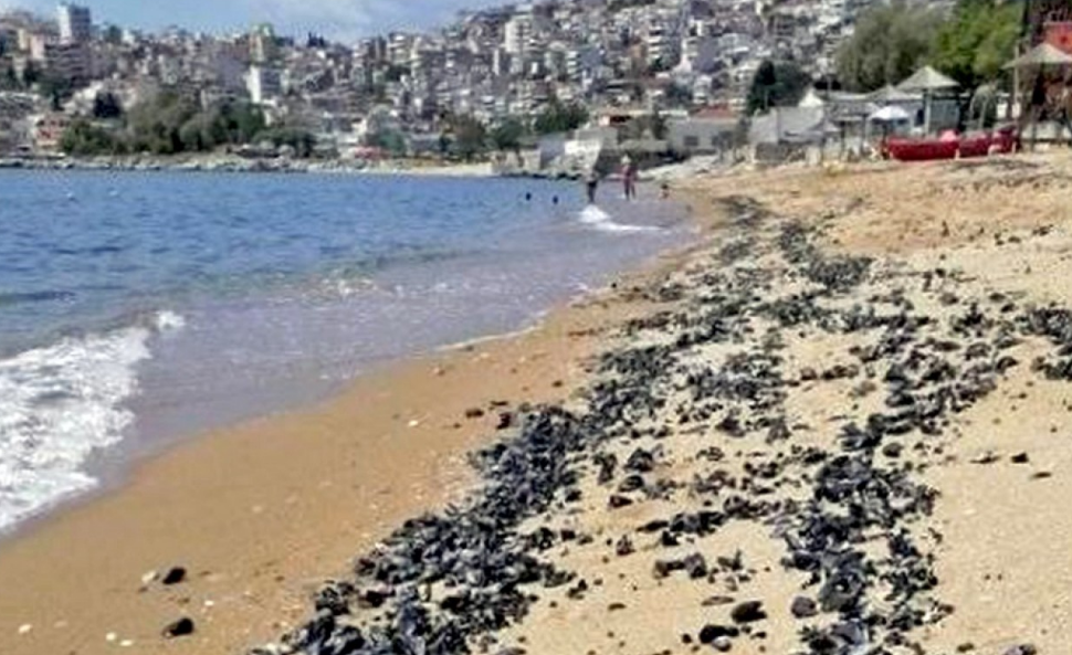 Με εκατοντάδες νεκρά μύδια γέμισε η παραλία του Περιγιαλίου στην Καβάλα. Τα οστρακοειδή εκτείνονται σε μεγάλο μήκος της παραλίας, συνθέτοντας μια θλιβερή εικόνα και προκαλώντας το ενδιαφέρον των λουομένων.
