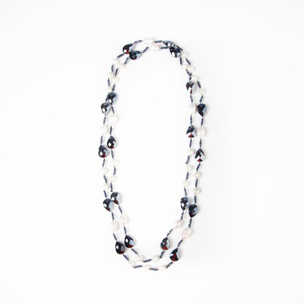 Κολιέ Μαύρο Ημιπολύτιμες Πέτρες Και Μαργαριτάρια