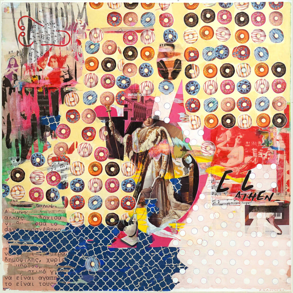 Άραγε η δόξα της τέχνης είναι περαστική ; Τί συμβαίνει όταν ο Δαβίδ του Michelangelo συνδιαλέγεται με τον Henry Moore και το κολλάζ; Και ποιος από όλους είναι ο δημιουργός μέσα σε μια πολυδιάστατη και συγχρονική αφήγηση;Μέσα από τη νέα του εικαστική δουλειά με κολλάζ και ζωγραφική σε καμβά, ο Κωνσταντίνος Πάτσιος προβαίνει σε τολμηρές απαντήσεις επικαλούμενος πλήθος εικονογραφικών στυλ και αναφορών από την ιστορία της τέχνης αλλά και το σύγχρονο καταναλωτικό σύμπαν. Πορτραίτα που παραπέμπουν σε μια παρωχημένη δόξα, άλλοτε αναγνωρίσιμα, άλλοτε ηθελημένα ανώνυμα, εγκαταλείπουν τις οικείες ιδιότητές τους και συγκατοικούν με τη νεο-ποπ κουλτούρα. Εξυμνώντας το εφήμερο με αποσπασματικά σώματα, σχέδια και αποκόμματα εφημερίδων, ο Πάτσιος δημιουργεί απρόσμενες αλλά αβίαστες συνδέσεις στον καμβά, σε ένα νέο υπερ-κειμενικό επίπεδο. Η συνεχής υπενθύμιση της ματαιότητας αφήνει μετέωρα ερωτήματα για το αν η νέα αφήγηση που προκύπτει αντικατοπτρίζει την πρόοδο, ή τον μύθο της πτώσης. Στους πίνακες, τα πολλαπλά υποκείμενα, έμφυλα, έμψυχα ή άψυχα, δεν υπερκαλύπτουν το ένα άλλο και όλα διεκδικούν το χώρο τους. Παραφράζοντας τον Μπαρτ, ο καμβάς γίνεται ένας πολυδιάστατος χώρος όπου μια ποικιλία γραφών, καμία από αυτή πρωτότυπη, αναμιγνύονται και συγκρούονται. Οι ιεραρχίες καταρρίπτονται· οι ήρωες έχουν αντικατασταθεί από άλλους ή τα είδωλά τους. Έτσι περνά η δόξα της τέχνης…