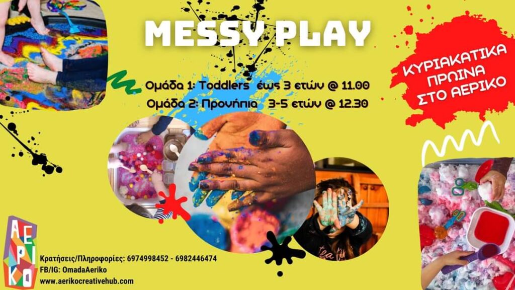 Το messy play μέσα από την ενασχόληση με μπογιές, άμμο, πηλό, ζύμη κλπ βοηθά τα παιδιά να γνωρίσουν νέες υφές και υλικά ώστε να κατανοήσουν τις αισθήσεις τους ευκολότερα.Το messy play βοηθά την ανάπτυξη της φαντασίας, της ομιλίας, της επικοινωνίας τους, βοηθά στην συγκέντρωση της προσοχής, καλλιεργεί πολλές δεξιότητες και ενισχύει τις γνώσεις των παιδιών!