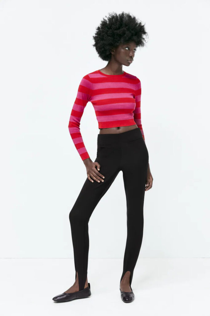 To crop top από τα ZARA είναι με κόκκινη ρίγα και ταιριάζει ιδανικά με ψηλόμεσο τζιν.