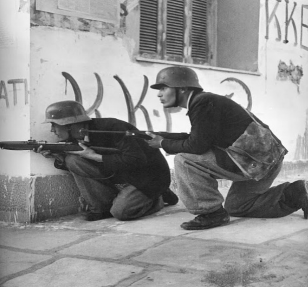 Το κλίμα στην Αθήνα είναι εκρηκτικό, παρά την απελευθέρωση της χώρας από τους Ναζί μερικές εβδομάδες νωρίτερα. Οι εύθραυστες πολιτικές ισορροπίες και το τελεσίγραφο αφοπλισμού όλων των αντάρτικων ομάδων, είχαν οδηγήσει στο συλλαλητήριο της 3ης Δεκεμβρίου όπου οι αστυνομικές δυνάμεις άνοιξαν πυρ ενάντια στο πλήθος, σκοτώνοντας δεκάδες ανθρώπους.