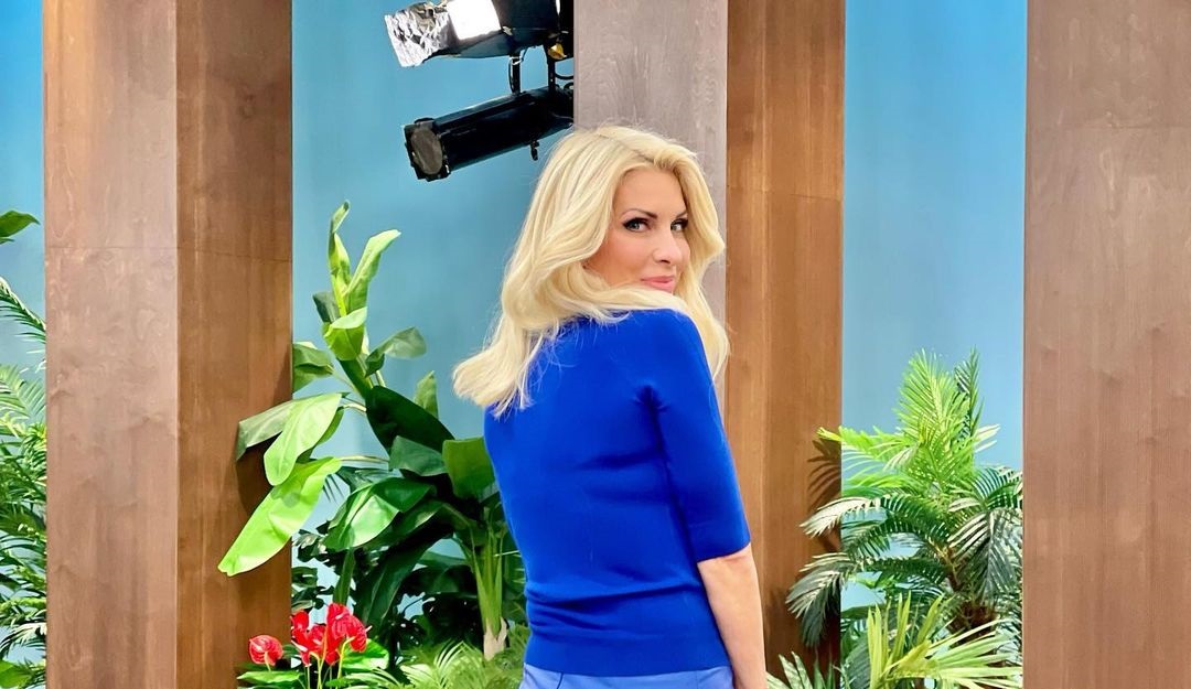 Αυτή τη φορά, η Ελένη Μενεγάκη επέλεξε να κάνει ένα ένα chic total blue look.