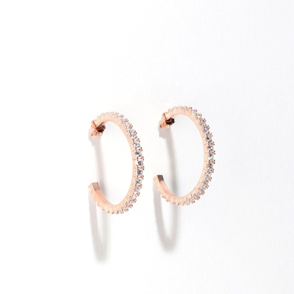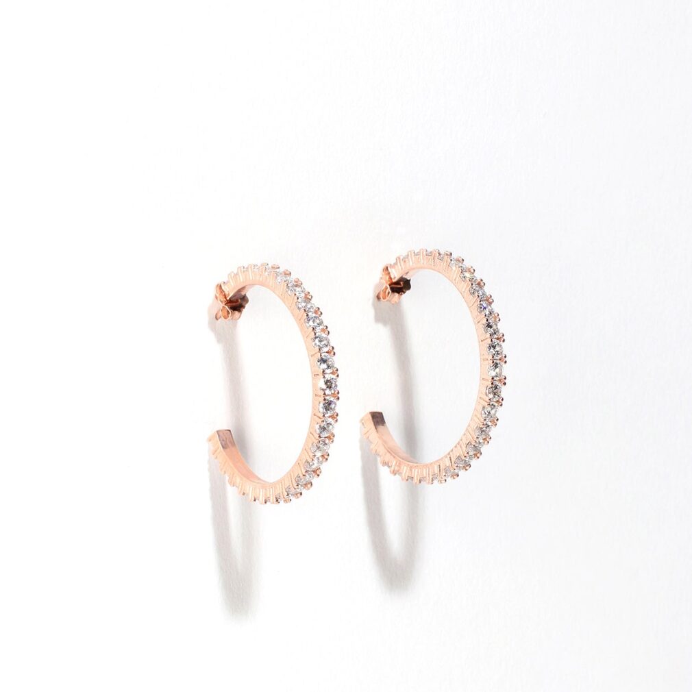 Σκουλαρίκια Κρίκοι Ροζ Ασήμι Με Ζιργκόν