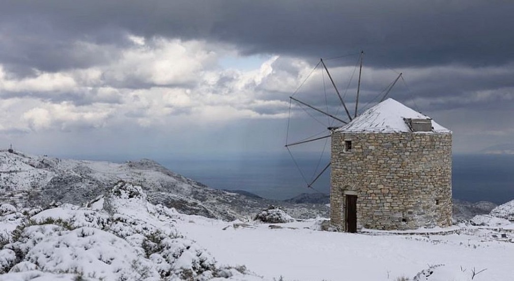 Ένα χαριτωμένο στιγμιότυπο κατέγραψε η τηλεοπτική κάμερα αφού ένας νεαρός επέλεξε να βουτήξει στη θάλασσα στη χιονισμένη Ψαρρού στη Μύκονο.