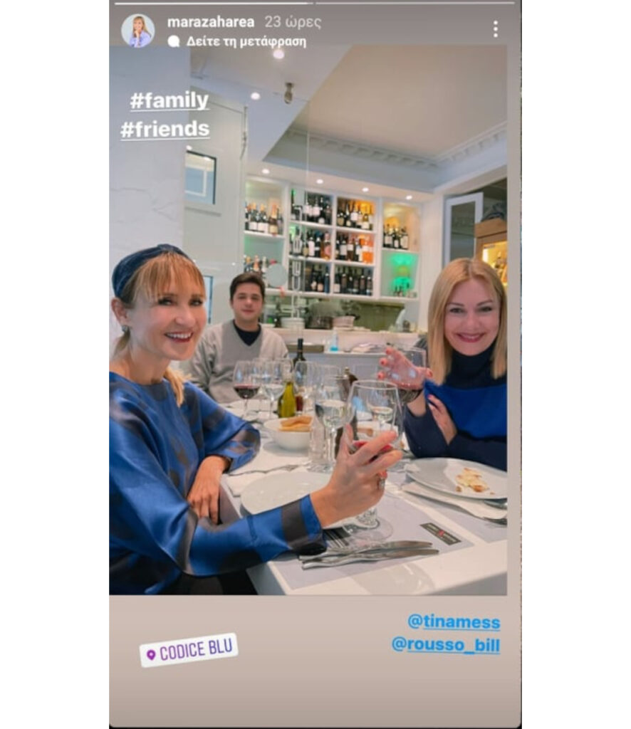 Πρόσφατα, η Μάρα Ζαχαρέα έκανε μια εξαίρεση και ανάρτησε σε story μια φωτογραφία από έξοδο με τον γιο της και τη φίλη της, επίσης δημοσιογράφο Τίνα Μεσσαροπούλου.