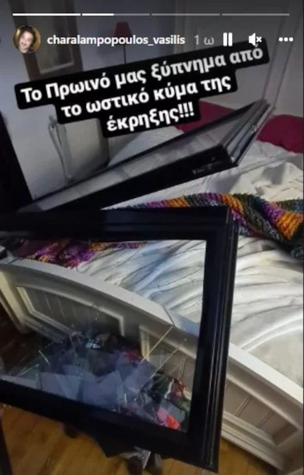 Ανάμεσα στα σπίτια που έχουν υποστεί ζημιές είναι και το σπίτι του ηθοποιού Βασίλη Χαραλαμπόπουλου, όπως δημοσίευσε ο ίδιος στο προφίλ του στο Instagram.