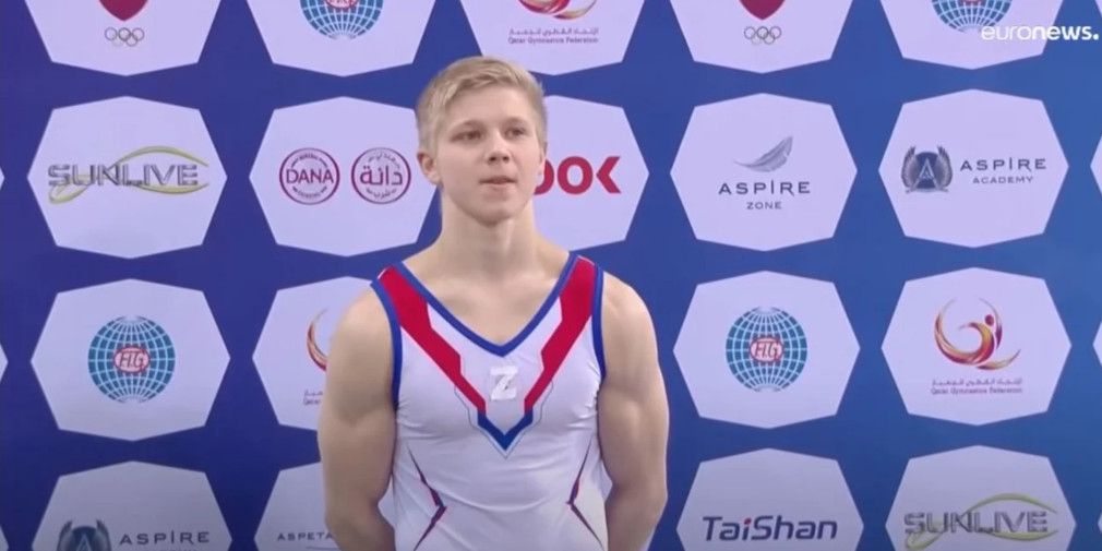 Ο 20χρονος αθλητής έλαβε στρατιωτική εκπαίδευση με τον ρωσικό στρατό πέρυσι και το σύμβολο στη φανέλα του ήταν στη θέση της ρωσικής σημαίας, η οποία έχει απαγορευτεί από τη Διεθνή Ομοσπονδία Γυμναστικής.