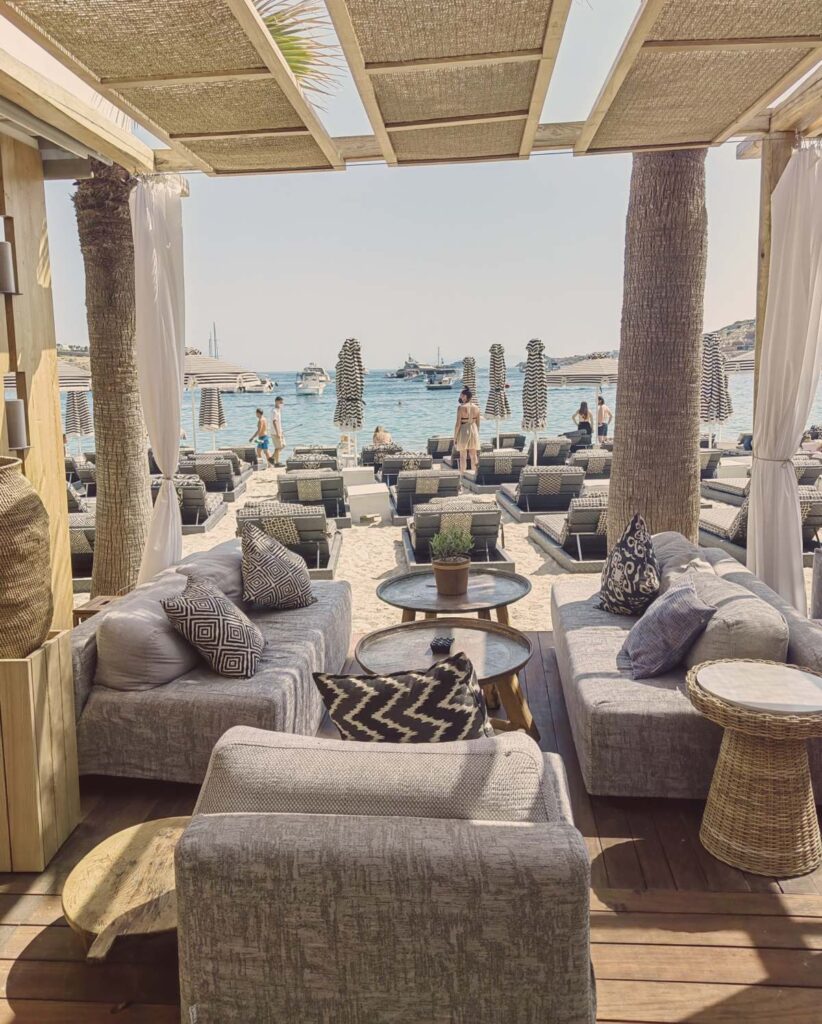 Εδώ θα χαλαρώσετε σε άνετες ξαπλώστρες, θα διασκεδάσετε με ζωντανή μουσική, θα απολαύσετε κοκτέιλ ακριβώς δίπλα στα καταγάλανα νερά της υπέροχης παραλίας του Ορνού. Μια ειδυλλιακή παραλία που απλώνεται ακριβώς μπροστά στο Pasaji Mykonos και σας καλεί να ξεκινήσετε τη μέρα σας με εξαιρετικό καφέ και δροσιστικούς χυμούς φρούτων και αργότερα να συνεχίσετε με νόστιμα finger foods, ελαφριά σνακ ή ακόμα και sushi απολαμβάνοντας παράλλλα τον ήλιο και τη θάλασσα.