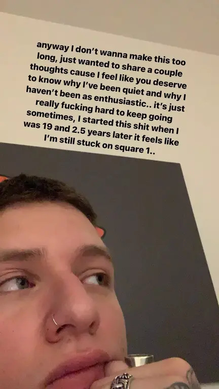 Είναι πραγματικά πολύ δύσκολο να προχωράς κάποιες φορές και να μην το βάζεις κάτω. Ξεκίνησα όλη αυτή την προσπάθεια στα 19 μου και 2,5 χρόνια μετά νιώθω σαν να βρίσκομαι ακόμα στην πρώτη πίστα. Πάντα ήμουν αληθινός μαζί σας αλλά ποτέ δεν υπήρξα τόσο διαφανής μαζί σας όσο τον τελευταίο καιρό.