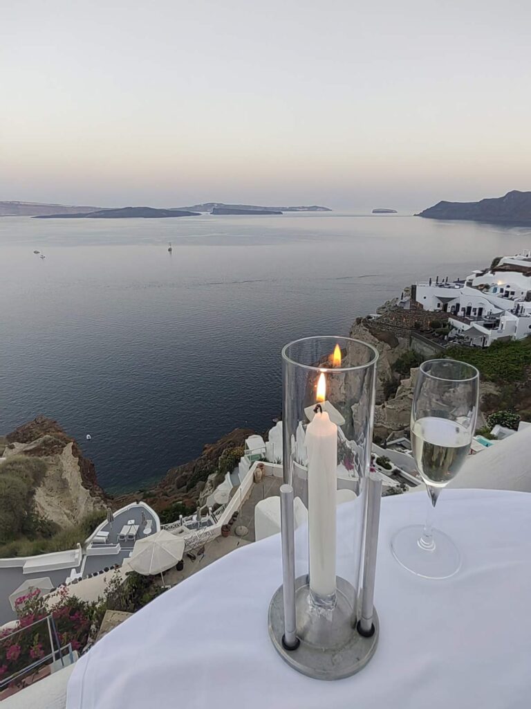 Ο λόγος για ένα πραγματικά γαστρονομικό ορόσημο με εκπληκτική θέα, το Ambrosia restaurant. Βρίσκεται στην ονειρεμένη Οία της Σαντορίνης, στην κορυφή του βράχου και πρόκειται για ένα από τα καλύτερα και πιο διάσημα εστιατόρια της Σαντορίνης και όλου του κόσμου. Το χωριό της Οίας είναι ένα μοναδικό μέρος με πολλές αναμνήσεις από το παρελθόν, την ομορφιά του σήμερα και απαλά όνειρα του αύριο γύρω σας. Στο εστιατόριο Ambrosia, θα απολαύσετε το δείπνο σας υπό το φως των κεριών στην πανοραμική βεράντα με θέα στη διάσημη Καλντέρα ή θα δειπνήσετε στις δύο εσωτερικές σάλες γεμάτες αντίκες. Το μενού στηρίζεται στην ελληνική δημιουργική κουζίνα ενώ δεν λείπουν διεθνείς πινελιές.