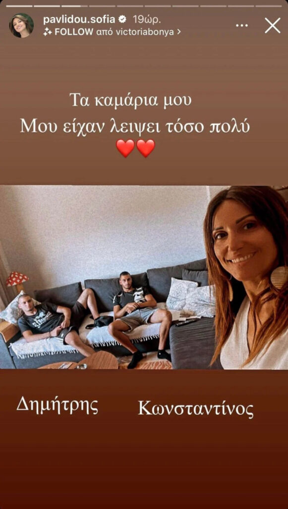 H ηθοποιός ανέβασε ένα story με τους δίδυμους γιους της, στους οποίους δεν έκρυψε ποτέ την αδυναμία της και τη συνόδευσε με τη φράση: «Τα καμάρια μου. Μου είχαν λείψει τόσο πολύ».