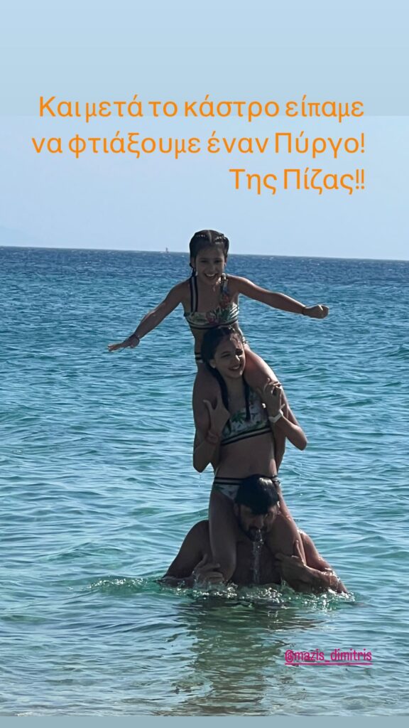Τα παιχνίδια στη θάλασσα ξεκίνησαν και μάλιστα η Μπέττυ Μαγγίρα δημοσίευσε μία φωτογραφία του συζύγου της, Δημήτρη Μάζη, να παίζει με τις κόρες τους, Ανδριάνα και Καλλινίκη, οι οποίες φορούν το ίδιο μαγιό.