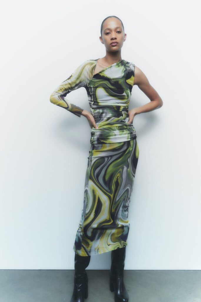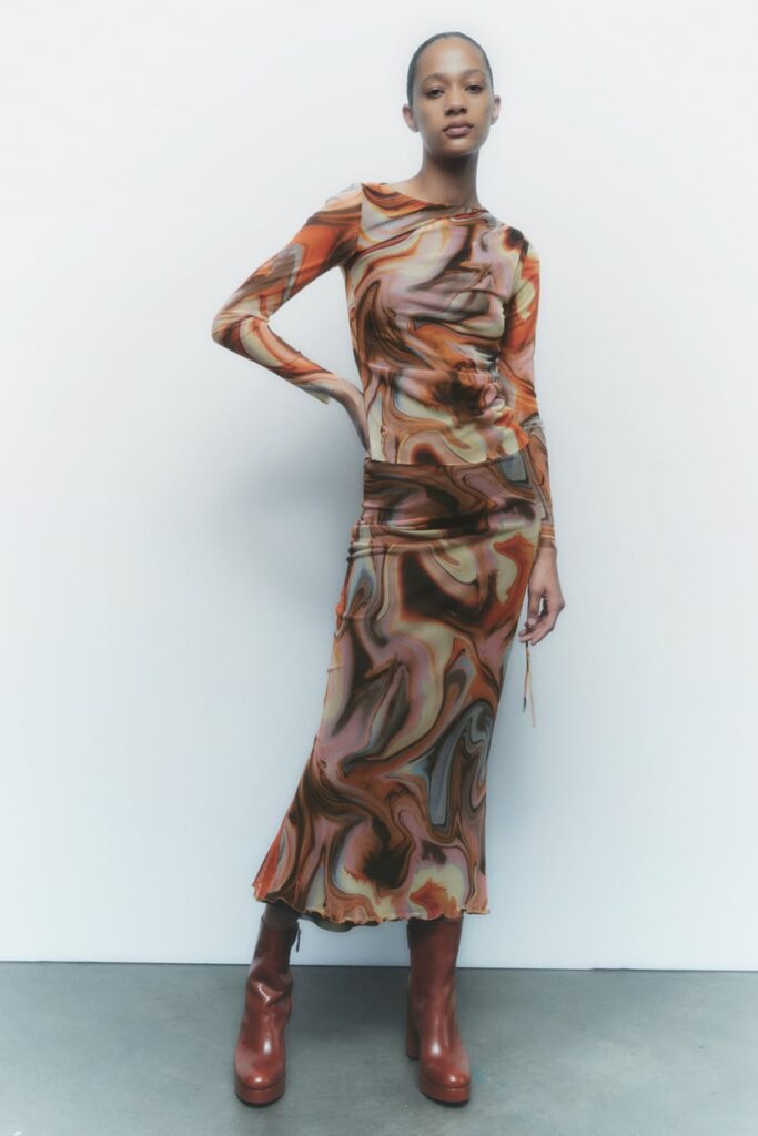 Η Σταματίνα Τσιμτσιλή φόρεσε το εμπριμέ σύνολο από τα Zara με τα γεωμετρικά σύνολα που έχουν έρθει ξανά στη μόδα. Για την ακρίβεια φόρεσε μια ψηλόμεση εμπριμέ μίντι φούστα με λάστιχο στη μέση και σε πράσινες αποχρώσεις η οποία κοστίζει μόλις 15,95 ευρώ, την οποία συνδύασε με ένα εμπριμέ πουκάμισο με στρόγγυλη λαιμόκοψη και μακρύ μανίκι σε καφέ- μπλε αποχρώσεις, στην ίδια τιμή.