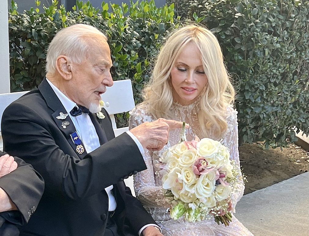 «Για τα 93α γενέθλιά μου (…) με χαρά μου ανακοινώνω ότι η εδώ και χρόνια αγαπημένη μου, η δρ Άνκα Φορ και εγώ, παντρευτήκαμε», έγραψε στο Twitter ο αστροναύτης αναρτώντας μια φωτογραφία του ιδίου και της Φορ, η οποία είναι 63 ετών, σύμφωνα με τα αμερικανικά μέσα ενημέρωσης. «Ενωθήκαμε με τα ιερά δεσμά του γάμου στη διάρκεια μιας μικρής ιδιωτικής τελετής στο Λος Άντζελες (δυτικές Ηνωμένες Πολιτείες) και είμαστε ενθουσιασμένοι σαν έφηβοι».