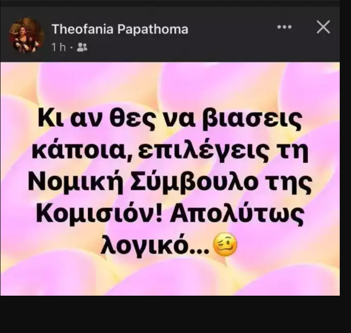 Συγκεκριμένα, έγραψε: «Κι αν θες να βιάσεις κάποια, επιλέγεις τη Νομική Σύμβουλο της Κομισιόν! Απολύτως λογικό…».