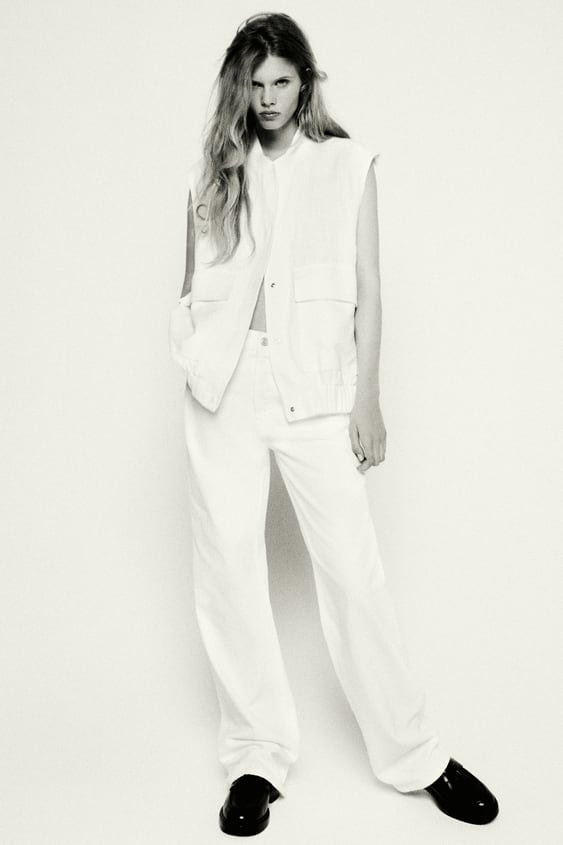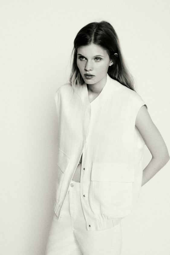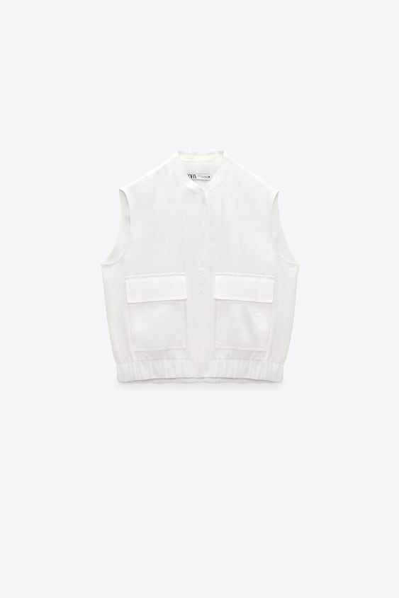 Βρήκαμε το πιο μοδάτο oversize λινό γιλέκο του καλοκαιριού από τα Zara σε σπασμένο λευκό χρώμα. Είναι φαρδύ αμάνικο με στρόγγυλη λαιμόκοψη, έχει τσέπες patch με καπάκι στο μπροστινό τμήμα. Κλείνει μπροστά με κουμπιά σούστες. Μπορείς να το συνδυάσεις με πολλούς τρόπους.