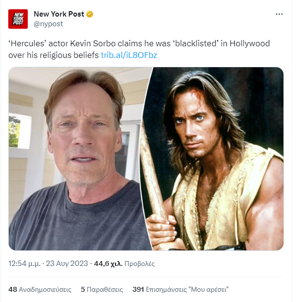 Ο Κέβιν Σόρμπο, ο οποίος έγινε διάσημος μέσα από τον ρόλο του ως «Ηρακλής» το 1995, καταγγέλλει ότι είναι θύμα της cancel culture.