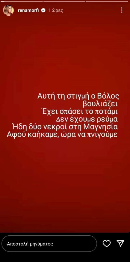 Η Ρένα Μόρφη βρίσκεται στον Βόλο κι μέσα από το Instagra ξέσπασε για την απελπιστικό κατάσταση στον Βόλο.