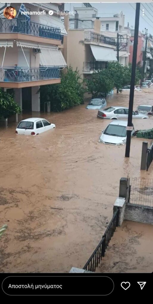 Αργότερα, δημοσίευσε και μία φωτογραφία με τον πλημμυρισμένο δρόμο όπου βρίσκεται το πατρικό της.