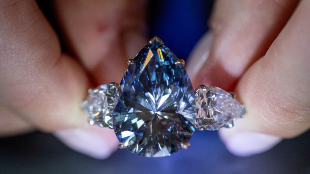 Γνωστό ως Bleu Royal, (Βασιλικό διαμάντι) αυτό το ζωηρό μπλε διαμάντι – το οποίο είναι τοποθετημένο σε δαχτυλίδι – είναι από τα σπανιότερα που έχουν ανακαλυφθεί ποτέ.