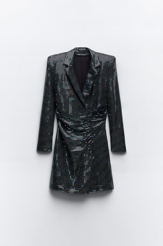 Βρήκαμε το hot μπλέιζερ φόρεμα με καθρέφτες από τα Zara. Φόρεμα με γιακά με πέτα και μακριά μανίκια με βάτες, έχει λεπτομέρεια σούρες στη μέση. Κλείνει στο πλάι με κρυφό φερμουάρ στη ραφή. Μπορεί να γίνει δικό σου μόνο με 39,95 ευρώ.