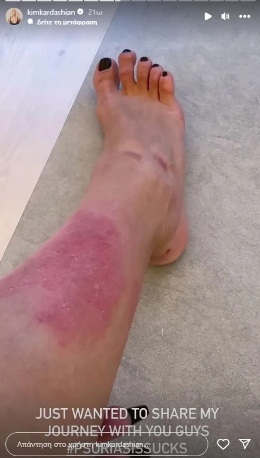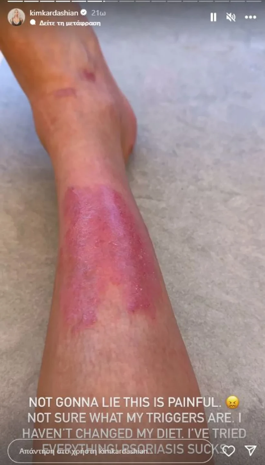 Επίσης, η Κιμ Καρντάσιαν σημείωσε ότι η ψωρίαση εμφανίζονταν συνήθως στο ίδιο σημείο στο σώμα της, αλλά αυτή τη φορά φαίνεται να έχει επιδεινωθεί η κατάσταση της.
