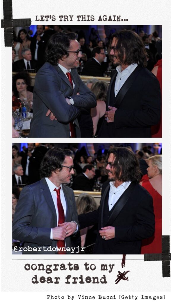 Ο Τζόνι Ντεπ έσπευσε να συγχαρεί Ρόμπερτ Ντάουνι Τζούνιορ με μια ανάρτηση στον προσωπικό του λογαριασμό στο Instagram.