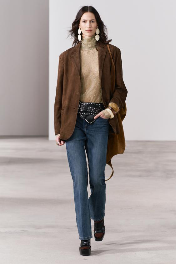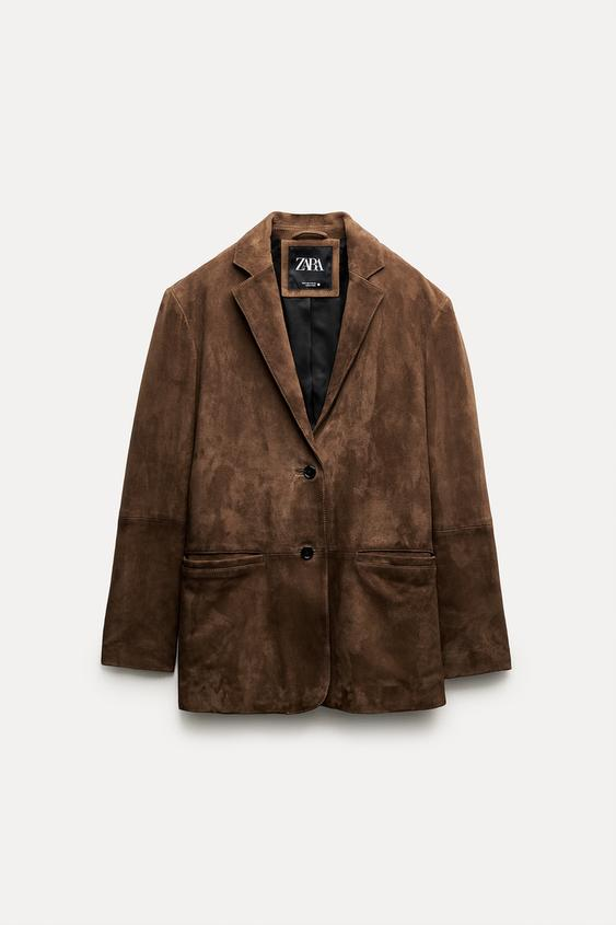 Βρήκαμε το μπλέιζερ από δέρμα 100% από τα Zara, που θα σε εντυπωσιάσει με την πρώτη ματιά. Γιακά με πέτο με εγκοπή και μρ μακριά μανίκια. Κλείνει μπροστά με κουμπιά.