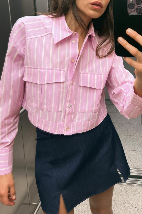Βρήκαμε το ροζ crop ριγέ πουκάμισο από τα Zara που ξεπουλάει. Πουκάμισο με γιακά και μακριά μανίκια, έχει μπροστινές τσέπες patch με καπάκι και κλείνει μπροστά με κουμπιά. Μπορεί να γίνει δικό σου μόνο με 25,95 ευρώ.
