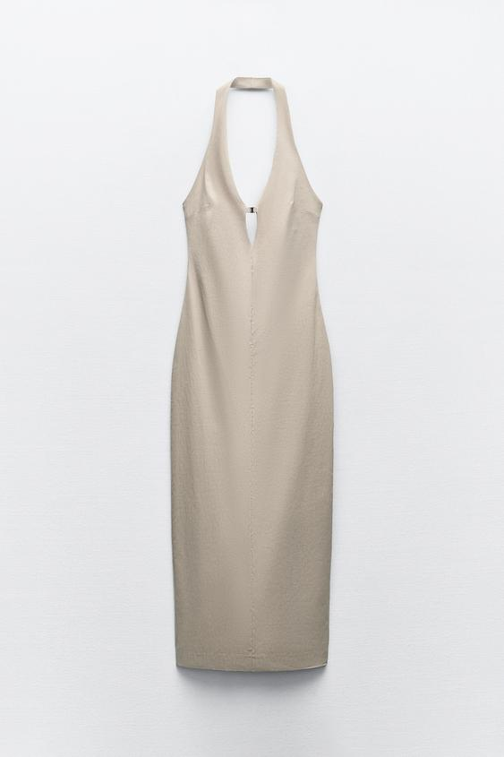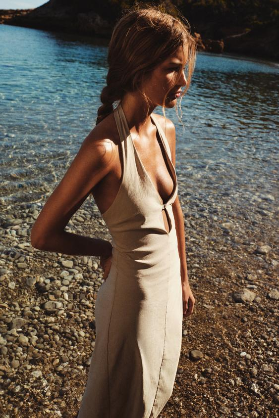 Βρήκαμε το sexy μίντι ταμπά φόρεμα της άνοιξης από τα Zara. Φόρεμα με λαιμόκοψη halter και V ντεκολτέ., με λεπτομέρεια άνοιγμα και μεταλλική κόπιτσα στο στήθος. Έχει ασορτί φόδρα και κλείνει στο πίσω μέρος με κρυφό φερμουάρ στη ραφή. Μπορεί να γίνει δικό σου μόνο με 29,95 ευρώ.