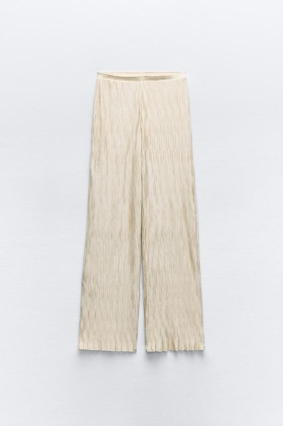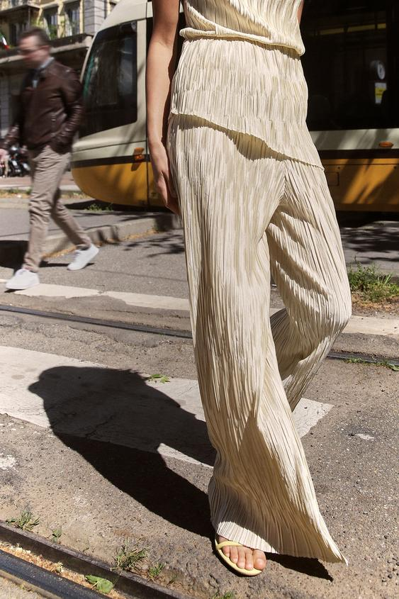 Βρήκαμε το εκρού εντυπωσιακό παντελόνι της εποχής από τα Zara. Μακρύ ψηλόμεσο παντελόνι με ελαστική μέση και πλισέ ύφασμα. Μπορείς να το φορές όλες της ώρες της ημέρας, θα γίνει δικό σου μόνο με 25,95 ευρώ.