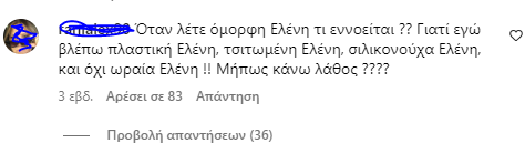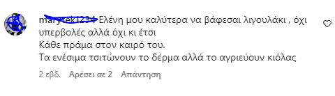 Γιατί, μπορεί η άβαφη Ελένη Μενεγάκη να αποτελεί ακόμα και θέμα, όμως, ορισμένοι χρήστες στα social media δεν έχουν την ίδια άποψη, με τα σχόλια να δίνουν και να παίρνουν. Δείτε κάποια από αυτά:
