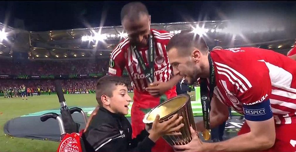 Ο μικρός Γιάννης Παπαστεφανάκης και το μήνυμά του ήταν από τις δυνατές στιγμές που ξεχώρισαν στον τελικό του Conference League, όπου ο Ολυμπιακός κατέκτησε το τρόπαιο.