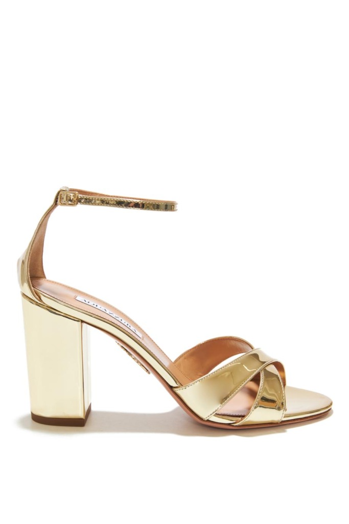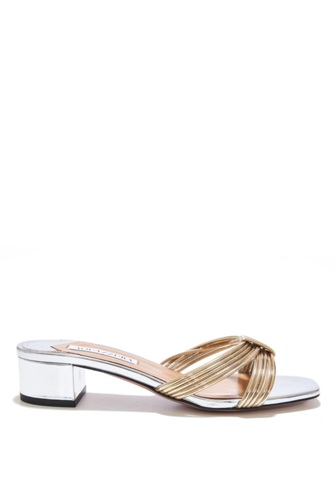 Photo cover:AQUAZZURA Divine 85 metallic leather sandals