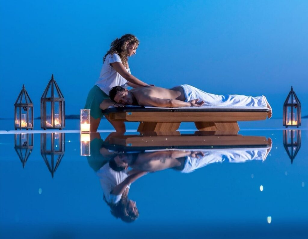 Αφεθείτε στην απόλυτη ηρεμία και ιδιωτικότητα του Spa και απολαύστε μια μοναδική αίσθηση χαλάρωσης κατά τη διάρκεια της οποίας θα αναδυθούν όλα τα όμορφα συναισθήματα και θα ζήσετε ένα μοναδικό μείγμα εμπειριών που θα “αδειάσει” το μυαλό σας. Από παραδοσιακά ή θεραπευτικά μασάζ και ρεφλεξολογία μέχρι θεραπείες προσώπου, μανικιούρ και πεντικιούρ  θα βρείτε ότι ταιριάζει σε κάθε προσωπική σας ανάγκη και θα σας αφήσει αναζωογονημένους και χαλαρούς.