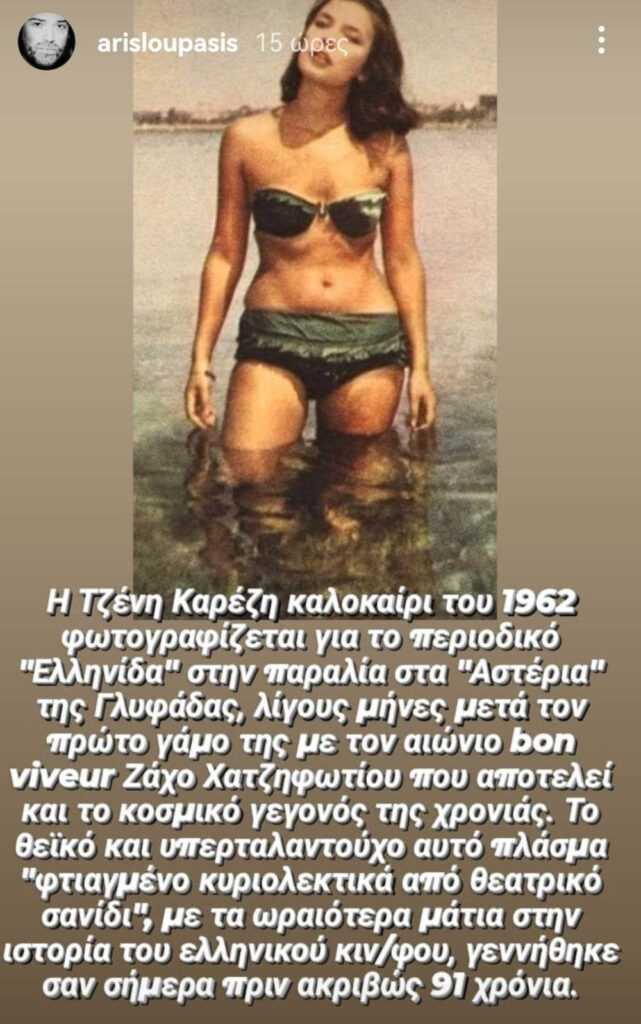 Mια φωτογραφία της αξέχαστης Τζένης Καρέζη είδαμε στον Instagram λογαριασμό του συλλέκτη και δημοσιογράφου Αρη Λουπάση.