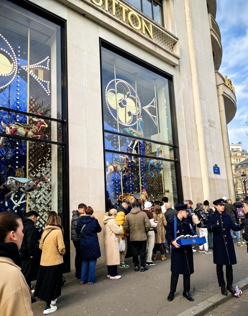Η Louis Vuitton κατάφερε και φέτος να έχει τη συνηθισμένη ουρά έξω από το κατάστημα, με το προσωπικό ντυμένο επίσημα να σερβίρει στον κόσμο που περιμένει -είτε για να μπει μέσα στο κατάστημα, είτε για να φωτογραφήσει απλά τη βιτρίνα – καφέ και τσάι.