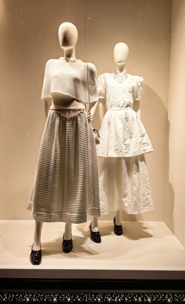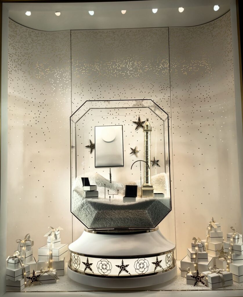 Οι βιτρίνες της -χωρίς κάποιον ιδιαίτερο χριστουγεννιάτικο στολισμό – έχουν την καλοκαιρινή κολεξιόν με λευκές τσάντες και λευκά ρούχα, ενώ στο διπλανό κατάστημα Chanel Bijoux, η έκπληξη είναι ότι οι βιτρίνες έχουν μόνο άδεια κουτάκια.