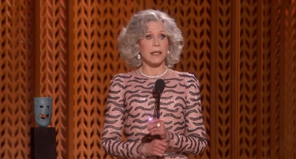 Η Τζέιν Φόντα γι’ ακόμη μία φορά καθηλώνει με ομιλία της και λέει αυτά που σκέφτονται πολλοί. Η Χολιγουντιανή σταρ τιμήθηκε με το 60ό βραβείο SAG Life Achievement Award για τη συνολική της προσφορά στον κινηματογράφο και την κοινωνία, στα Screen Actors Guild (SAG), που πραγματοποιήθηκαν το βράδυ της Κυριακής 23 Φεβρουαρίου.