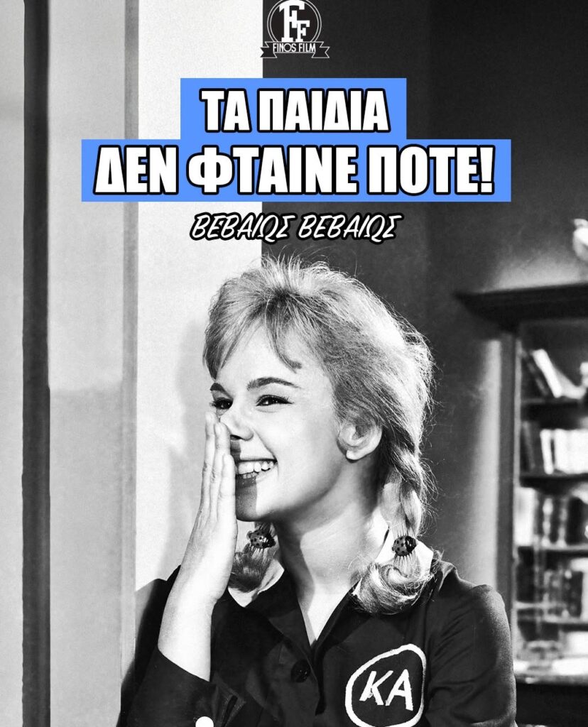 Πιο συγκεκριμένα, η Φίνος Φιλμ δημοσίευσε ένα απόσπασμα από την ταινία «Χτυποκάρδια στο θρανίο», με πρωταγωνίστρια την Αλίκη Βουγιουκλάκη. Στο εν λόγω βίντεο, η αξέχαστη σταρ του ελληνικού σινεμά μιλάει με τους καθηγητές της, λέγοντας πως την μπερδεύει η διδασκαλία τους. Πρόκειται για μία από τις διασημότερες σκηνές της ταινίας.