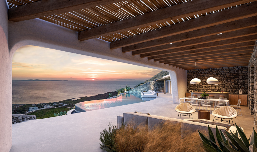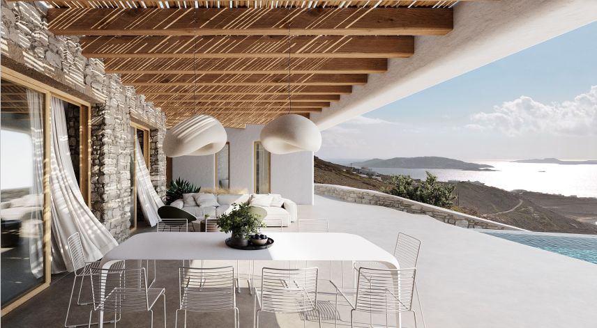 Το κάθε ακίνητο είναι ξεχωριστά όμορφο, πολυτελές αλλά και πλήρως εναρμονισμένο με την μοναδικότητα του Μυκονιάτικου τοπίου και συμμορφωμένο με τις ισχύουσες πολεοδομικές διατάξεις. Βίλες υψηλών προδιαγραφών, άριστης κατασκευής, βρίσκονται σε εξαιρετικές τοποθεσίες με μαγευτική θέα.